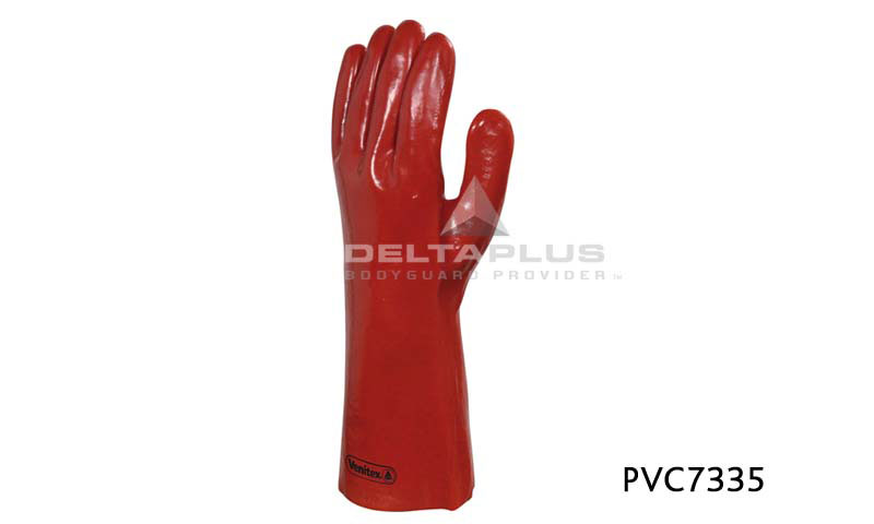PVC7335 加强硫化手套,针织棉衬里,佩带舒适,机械性能好,防水、耐寒,使用寿命长。