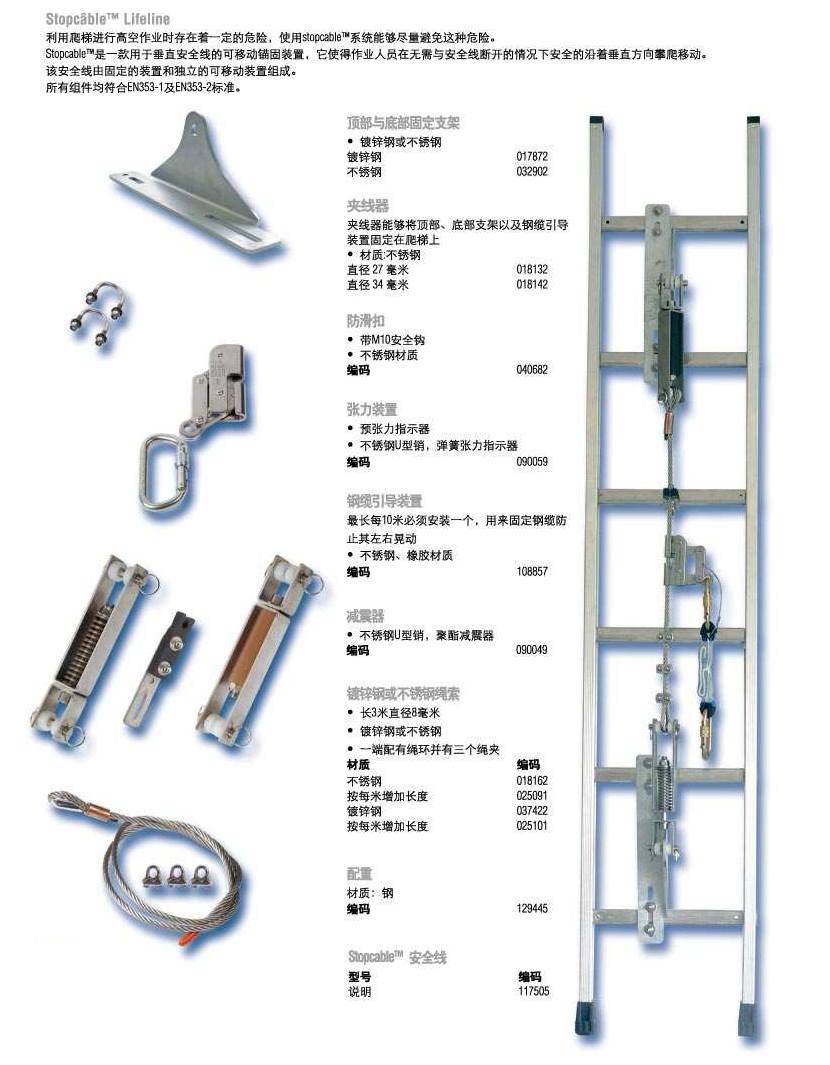 水平生命线系统 垂直生命线系统 安全带|安全绳 抓绳器|坠落制动器 连接件及附件